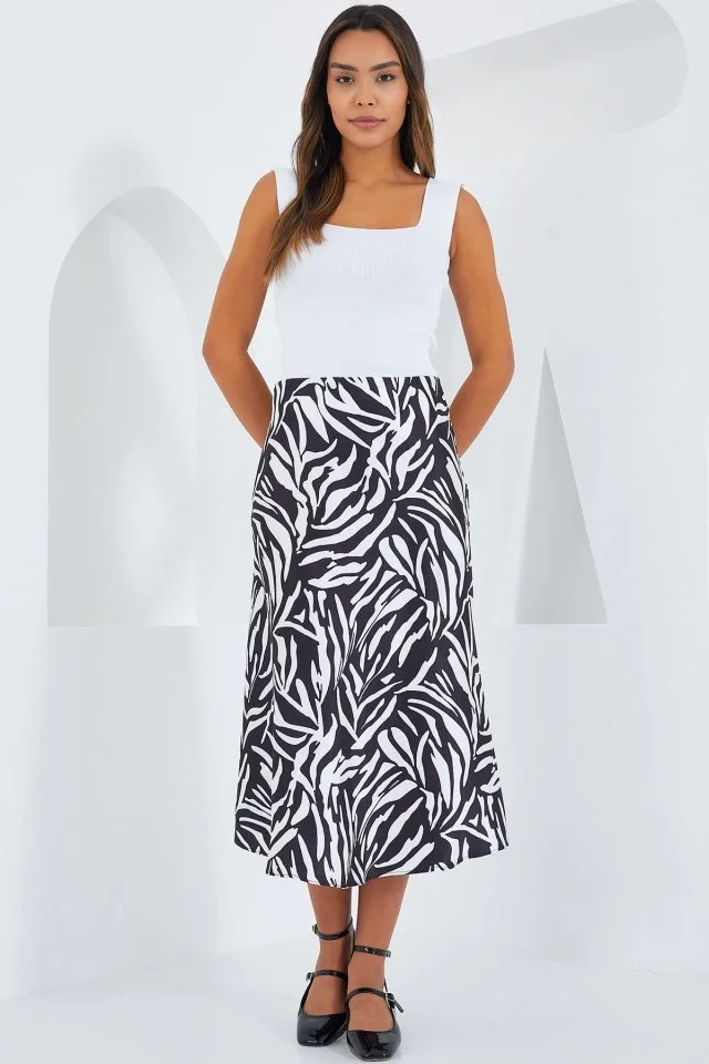 Siyah Beyaz Desenli Saten Etek 15806