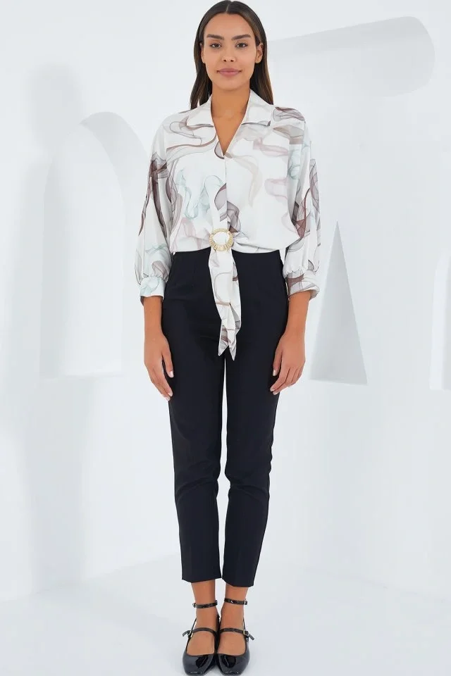 Beyaz Gömlek Yaka Saten Bluz 0493