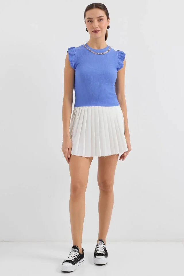 Büzgü Detaylı Kısa Kol Sandy Bluz 945 - Saks
