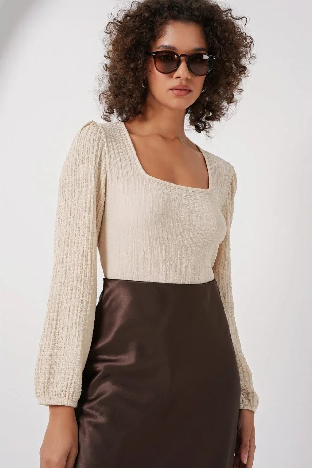 3964 Hafif Dökümlü Saten Gömlek - B.Kahverengi
