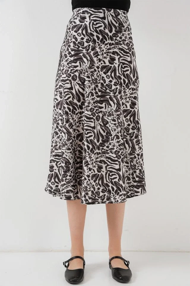 Kadın Kısa Kollu önden çapraz Detaylı Viskon Uzun Bluz Ve Desenli Iki Iplik Pantolon Ikili Takım
