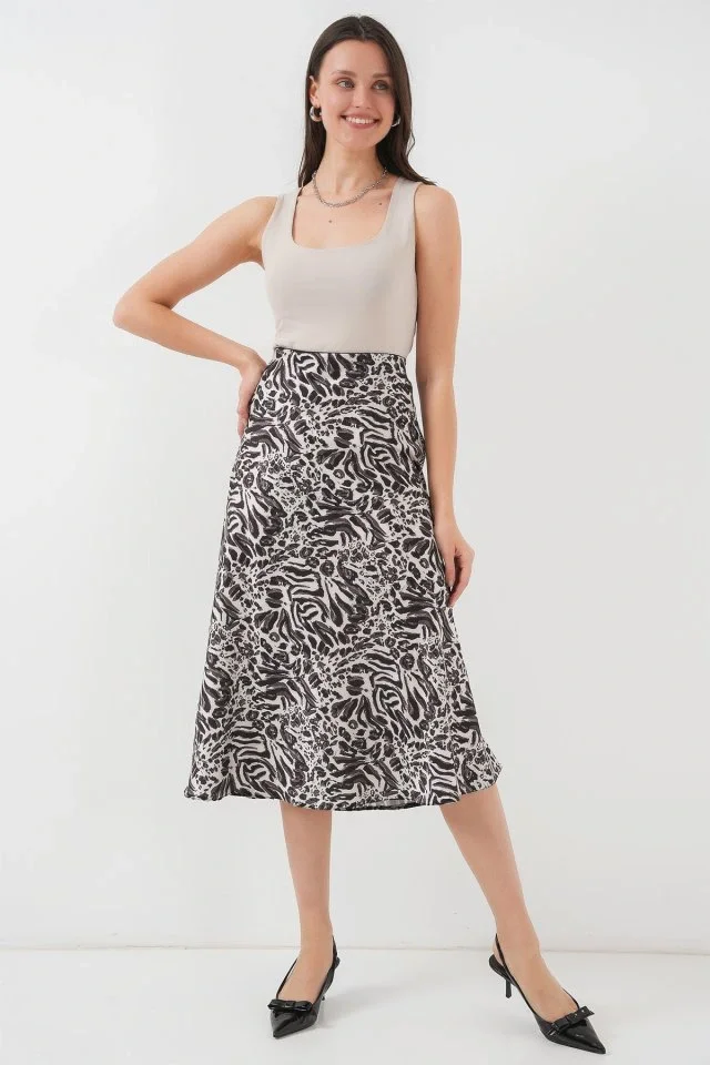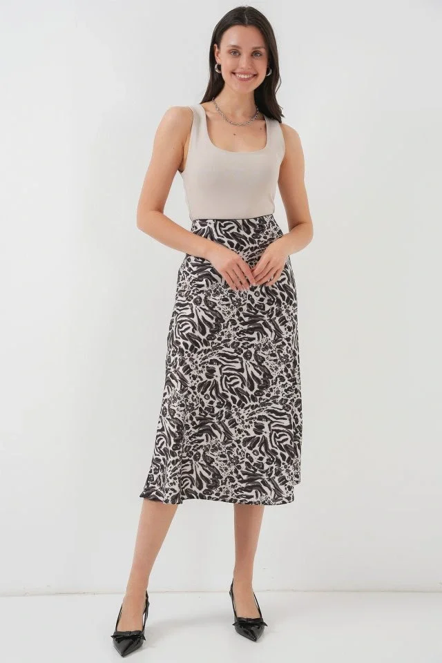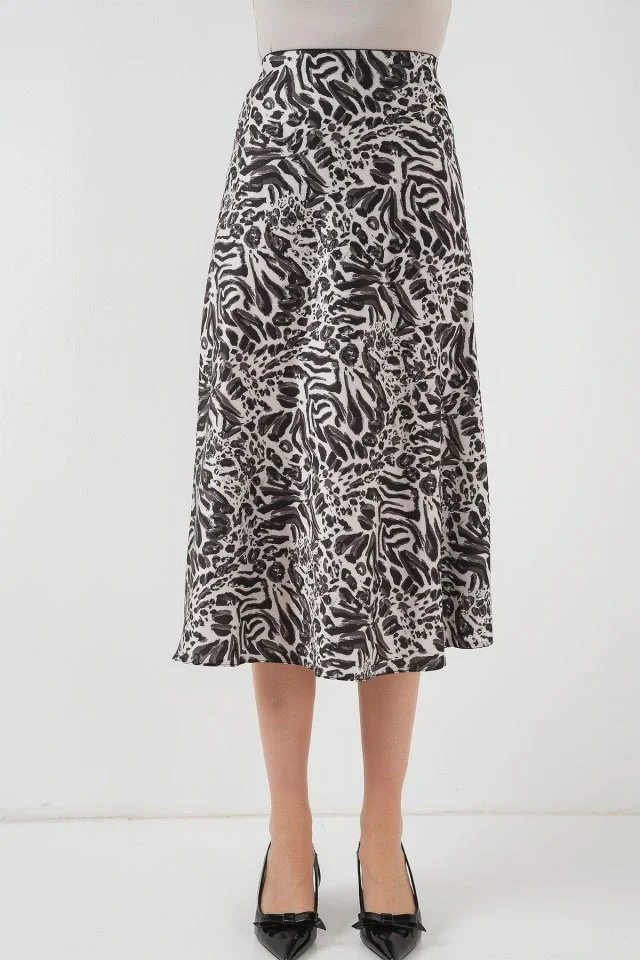 Kadın Kısa Kollu önden çapraz Detaylı Viskon Uzun Bluz Ve Desenli Iki Iplik Pantolon Ikili Takım
