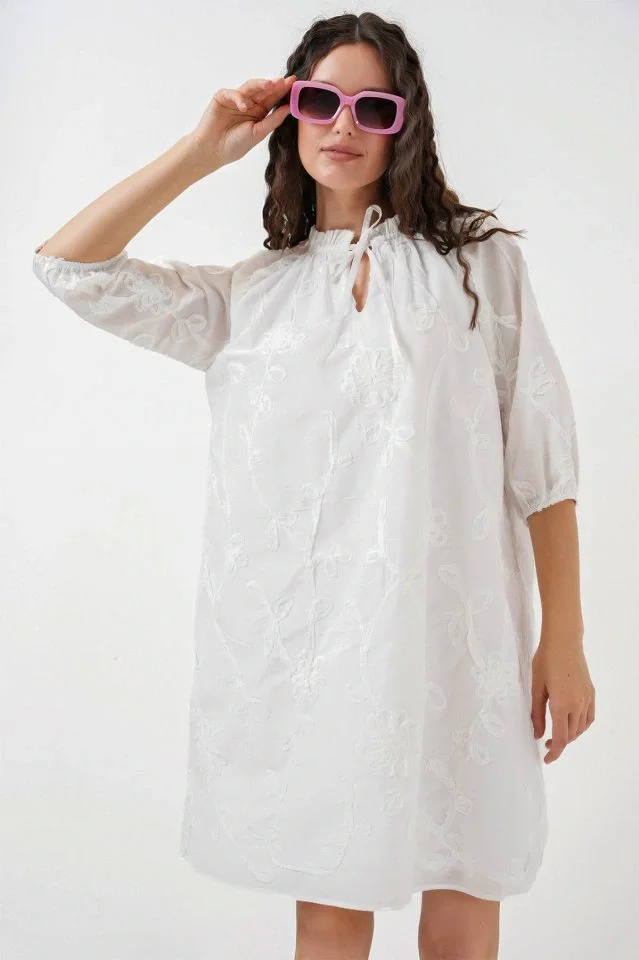 Omuz Vatkalı Kruvaze Yaka Bluz 942 - Beyaz