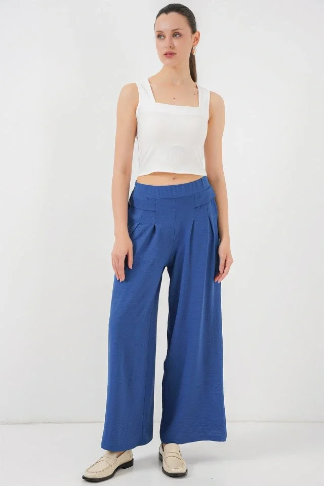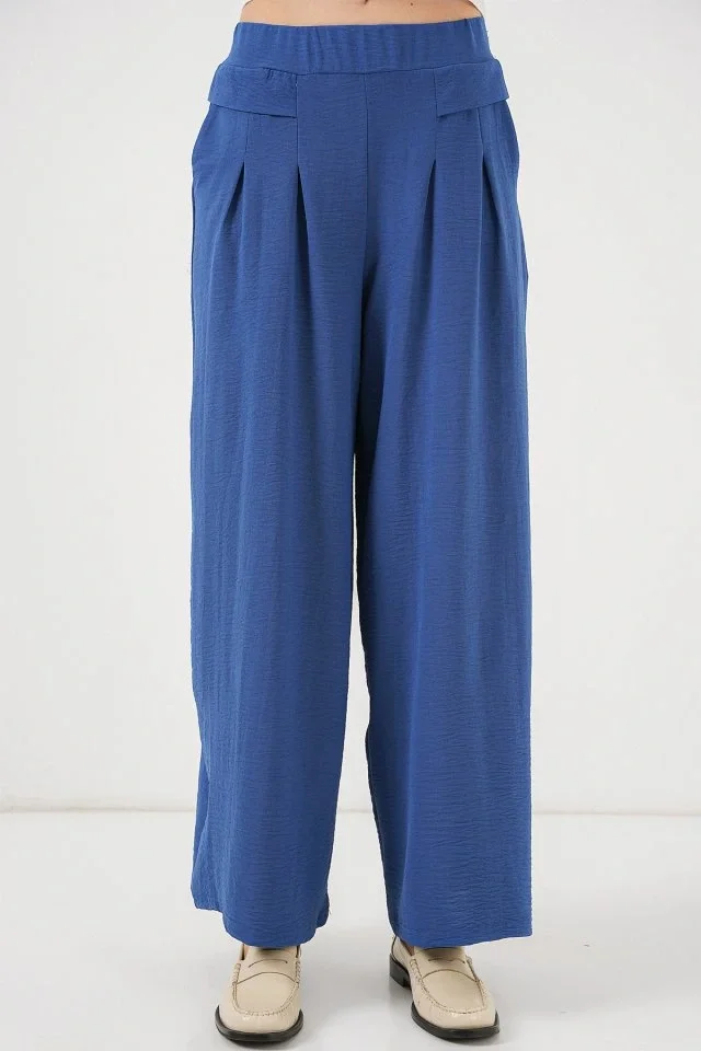 Geniş Paça Pileli Pantolon 6718 - İndigo