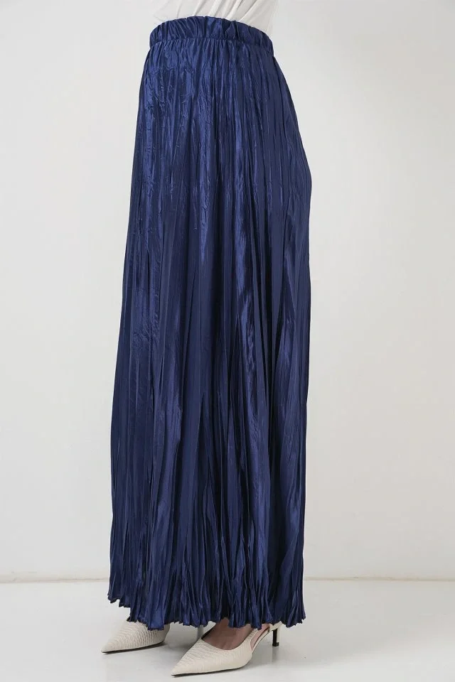 Uzun Kırışık Parlak Etek 8034 - D.Lacivert