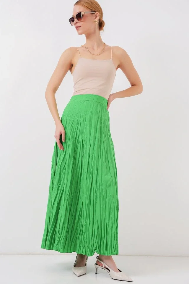 Geniş Paça Pileli Pantolon 6718 - Krem