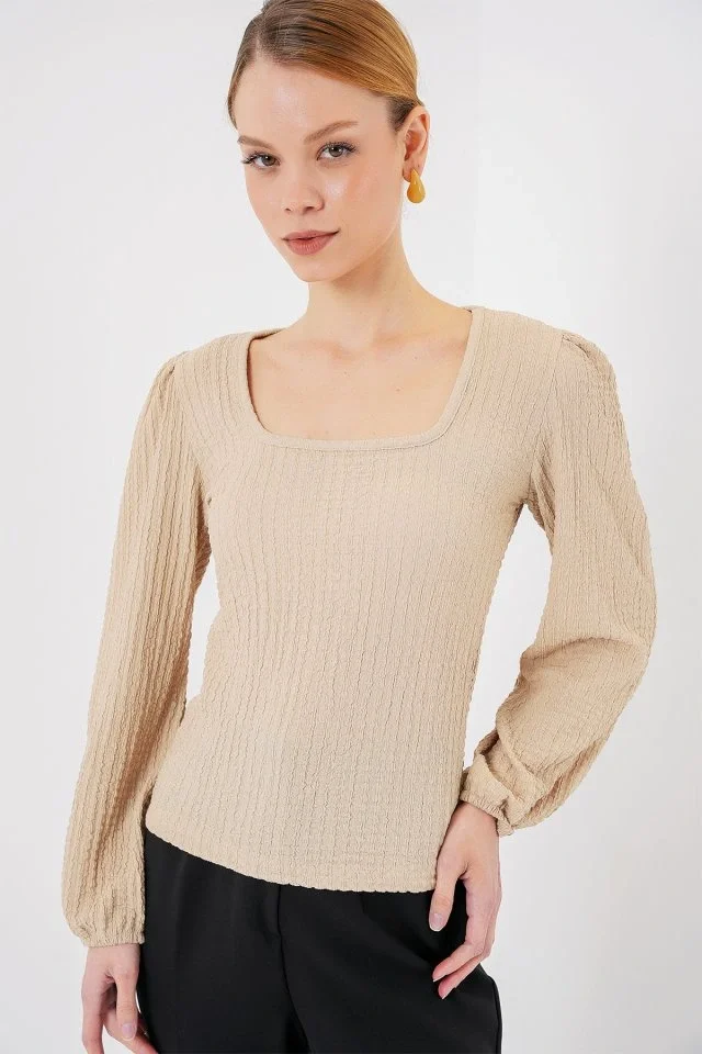 Büzgü Detaylı Kısa Kol Sandy Bluz 945 - Saks