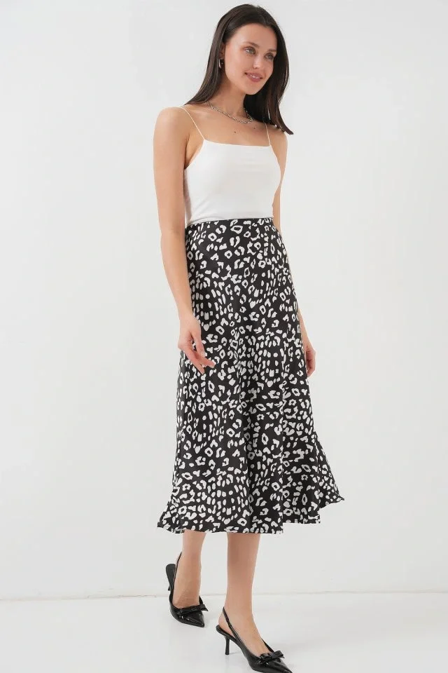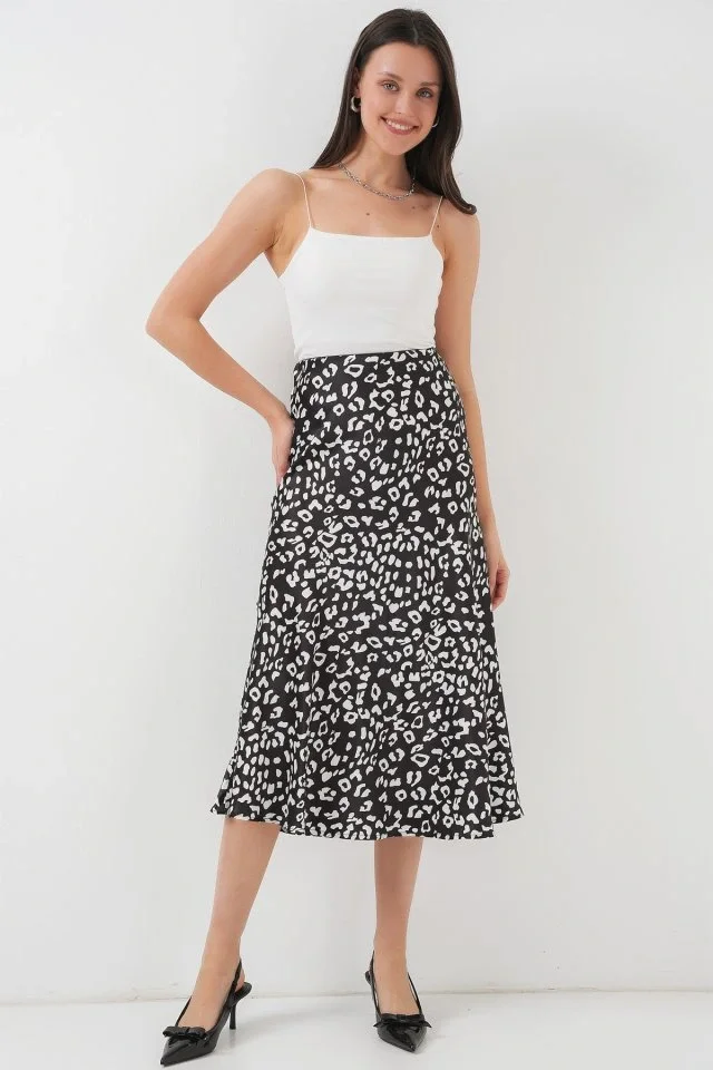 Kadın Kısa Kollu önden çapraz Detaylı Viskon Uzun Bluz Ve Desenli Iki Iplik Pantolon Ikili Takım