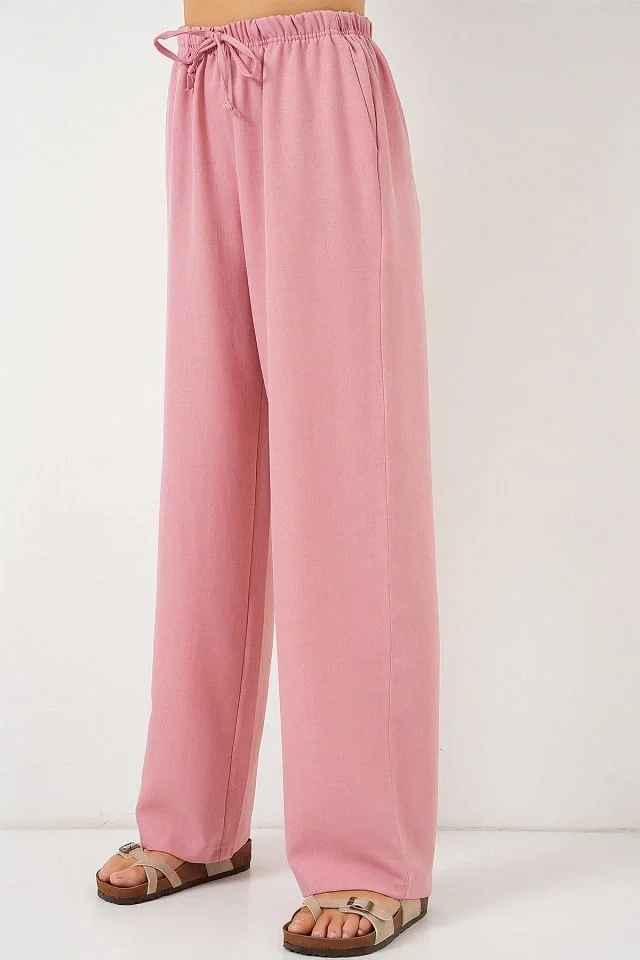 Geniş Paça Keten Pantolon 6735 - Pudra