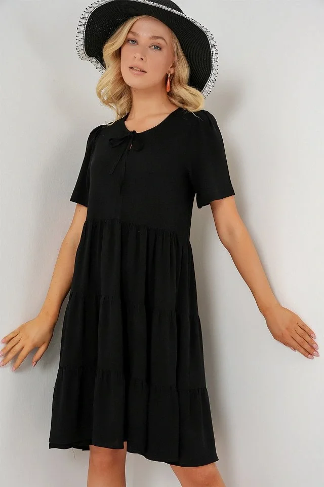 Kısa Kol Kısa Elbise 2554 - Siyah