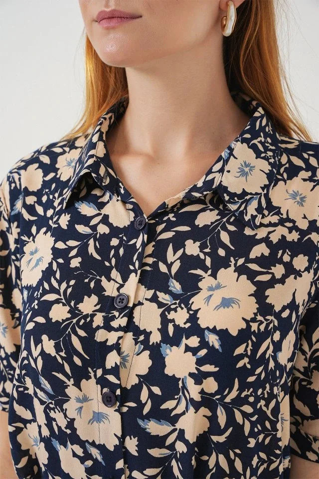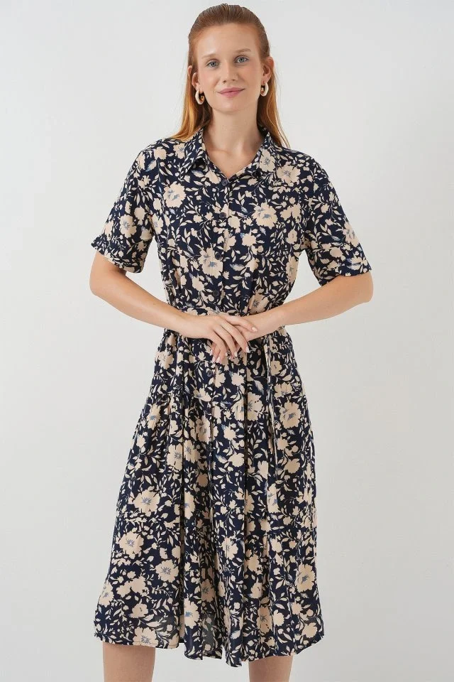Kısa Kol Desenli Elbise 2560 - Lacivert