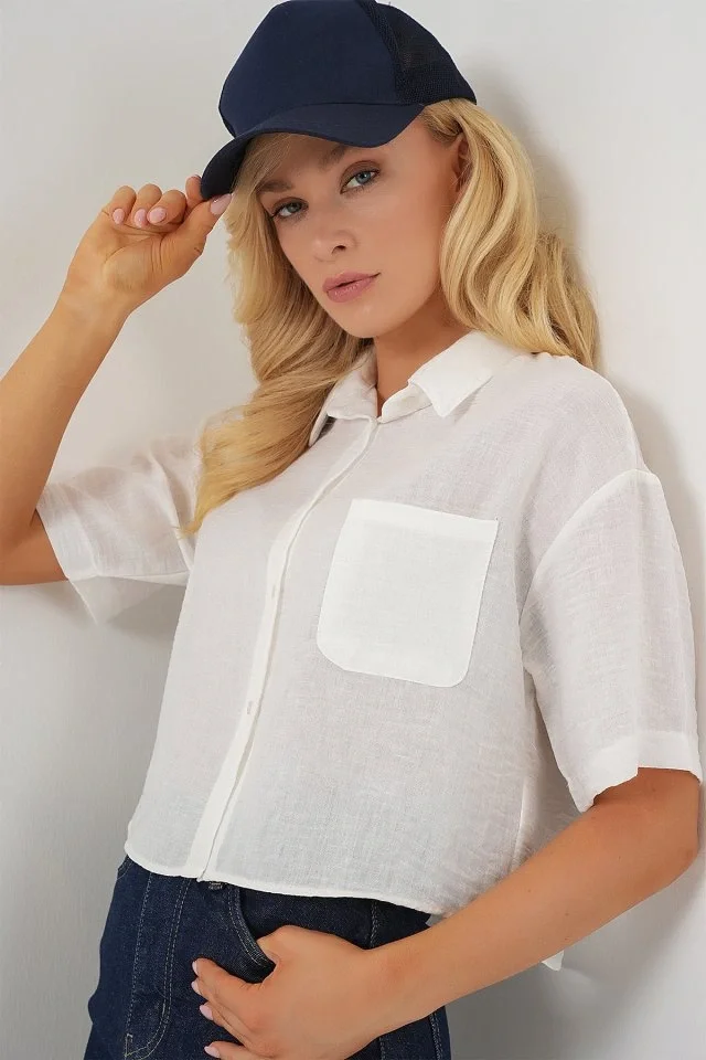 Kısa Kol Crop Gömlek 20341 - Beyaz