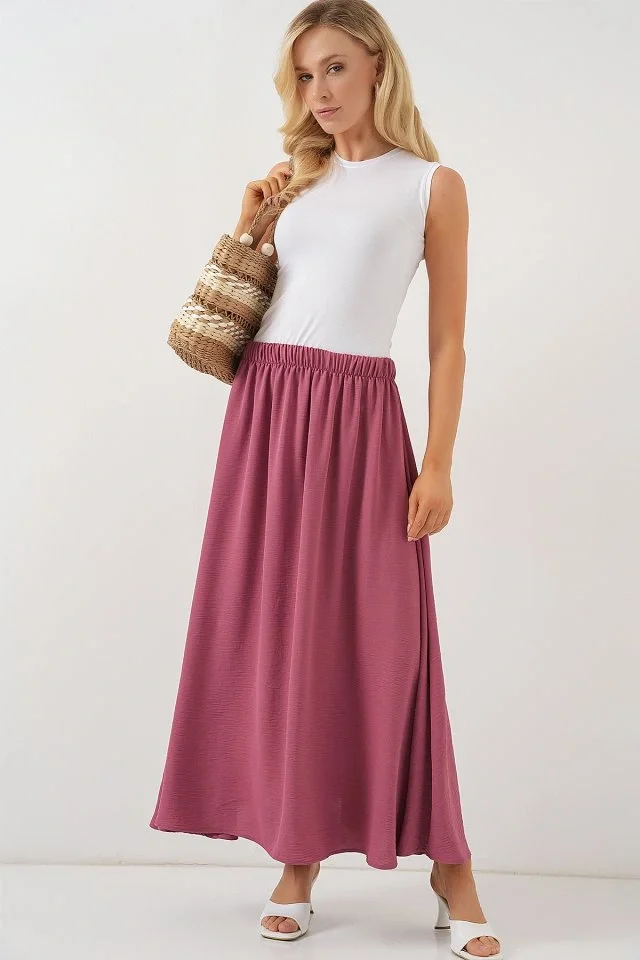 Uzun Ayrobin Etek 8050 - Gül Kurusu
