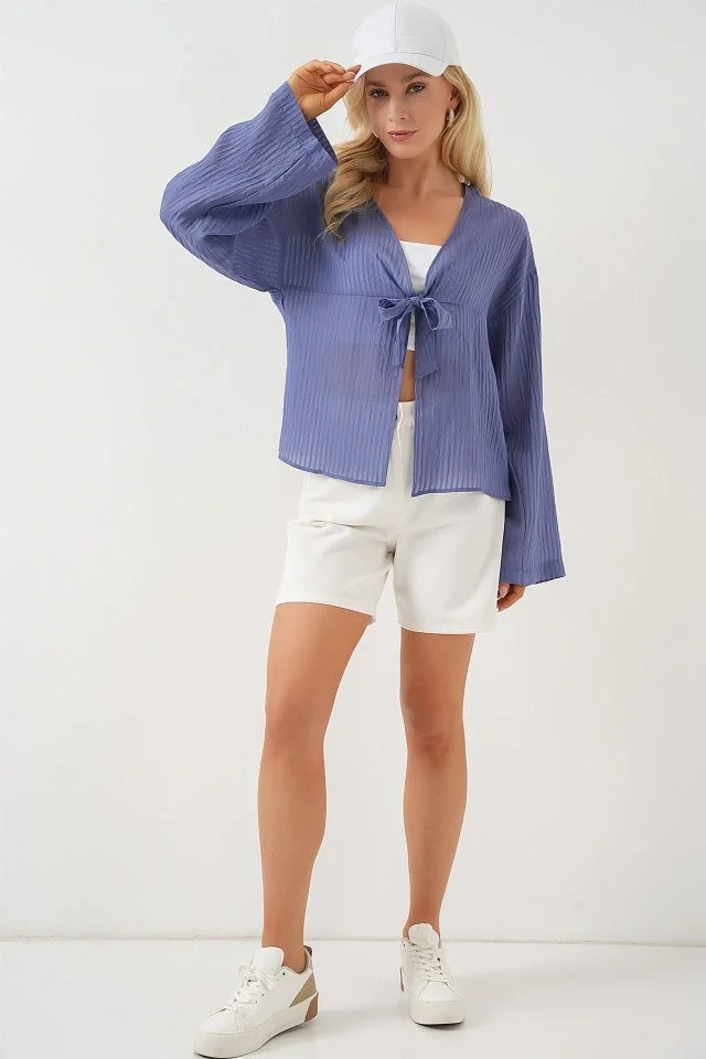 Önü Bağcıklı Bluz 952 - İndigo