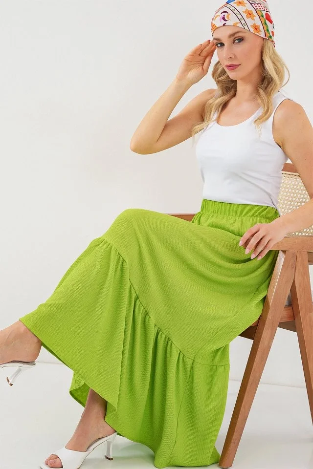 1886 Uzun Örme Etek - E.Yeşil