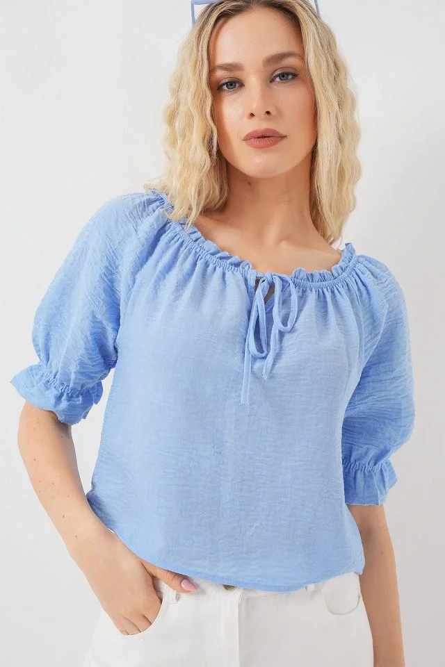 Yakası Fırfır Detaylı Bluz 959 - Mavi