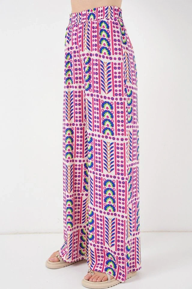 Desenli Viskon Pantolon 6749 - Fuşya