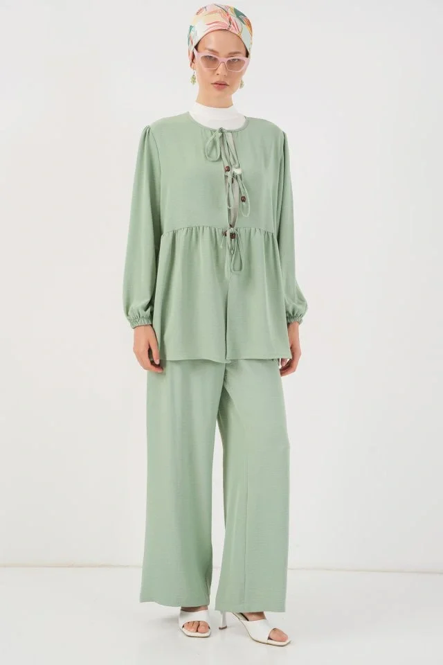 Önü Bağcıklı Tunik Pantolon İkili Takım 6744 - Mint
