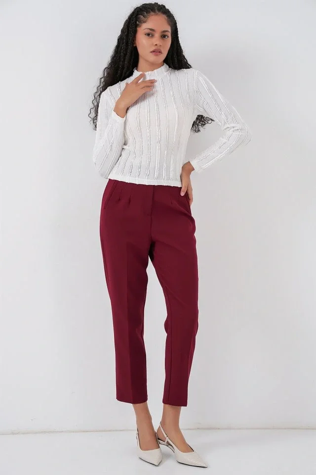 T-Shirt V Yaka Slim Fit Likralı Tişört Günlük Basic Body - Bordo