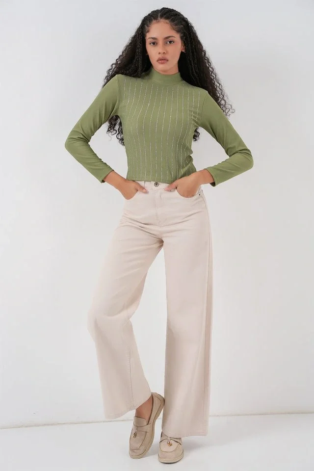 T-Shirt V Yaka Slim Fit Likralı Tişört Günlük Basic Body - Taş