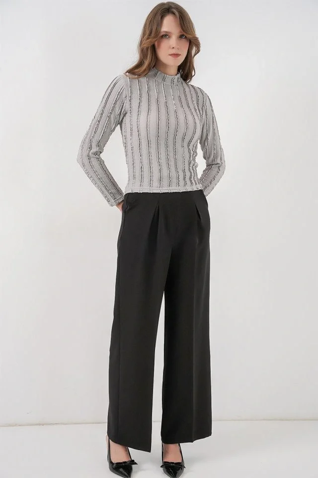Kadın Uzun Kollu Bisiklet Yaka Mini Ithal Krep Elbise