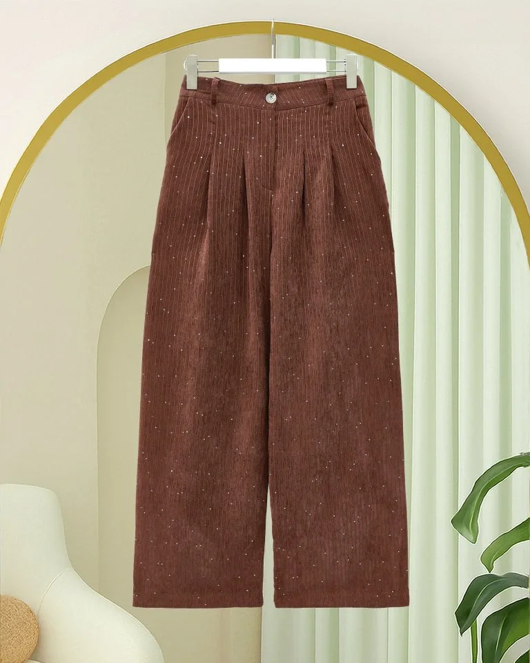 Cepli Bol Paça Pul Detaylı Kadife Pantolon -Kiremit