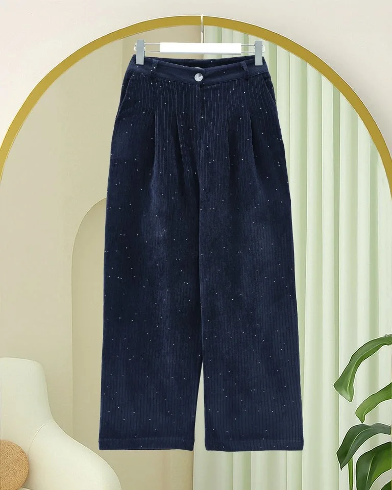 Cepli Bol Paça Pul Detaylı Kadife Pantolon -Laci