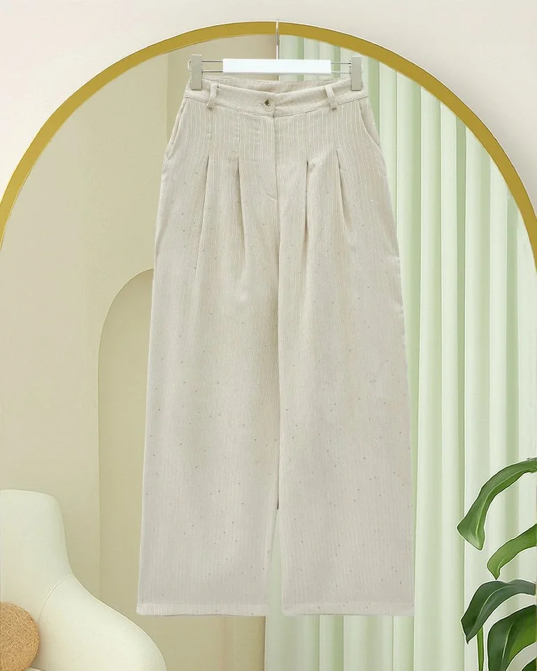 Cepli Bol Paça Pul Detaylı Kadife Pantolon -Bej
