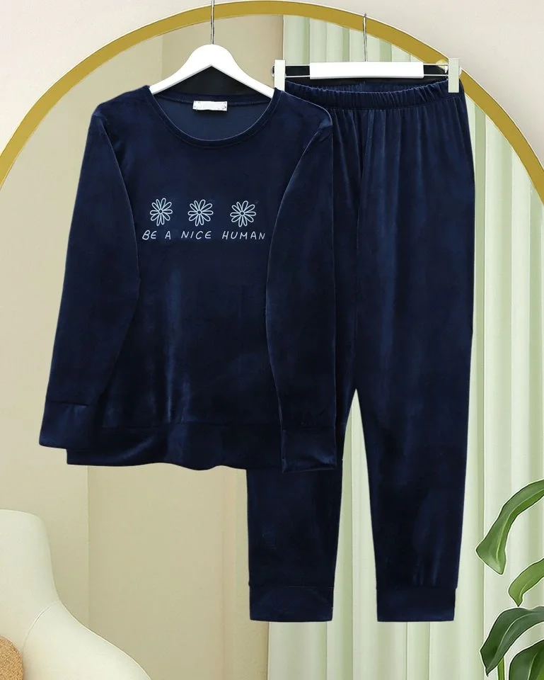 Kabartma Yazılı Fransız Kadife Pijama Takımı -G.Kurusu
