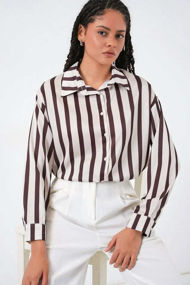 3964 Hafif Dökümlü Saten Gömlek - M. Kahverengi