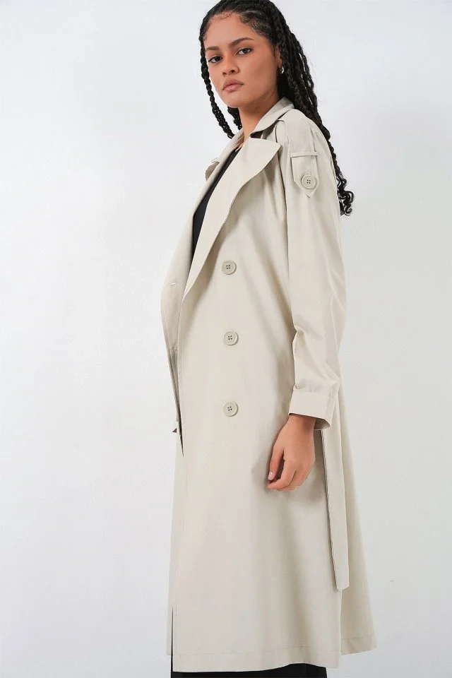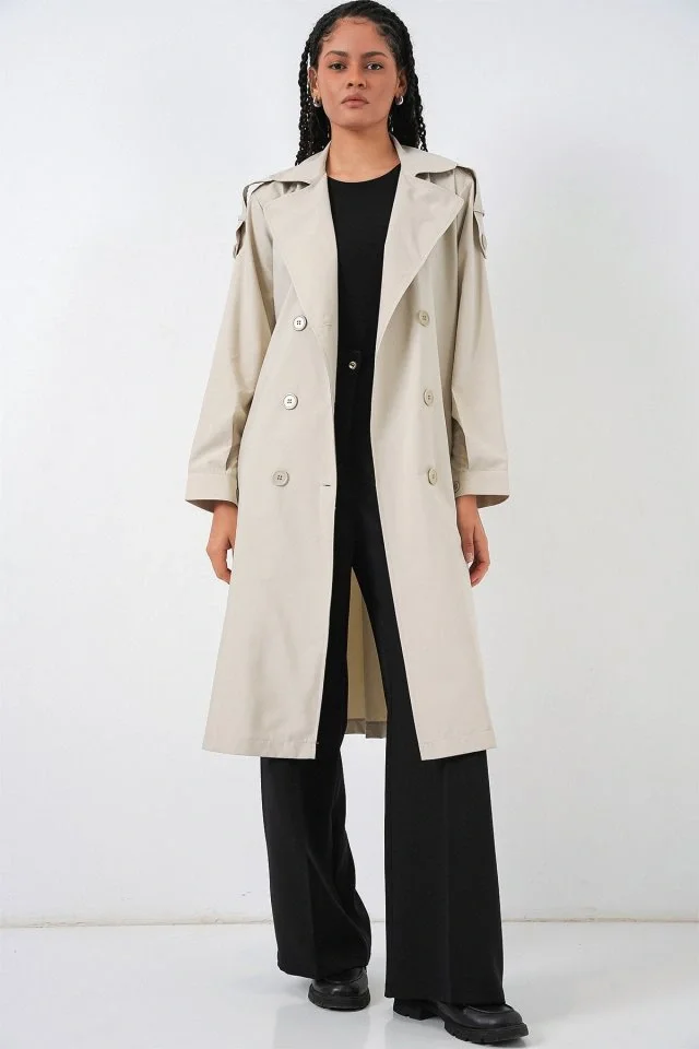 Kruvaze Yaka Trençkot 5978 - Taş