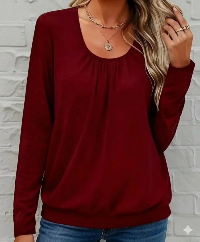 Kadın Uzun Kollu Derin Yuvarlak Yaka Kaşkorse Bluz