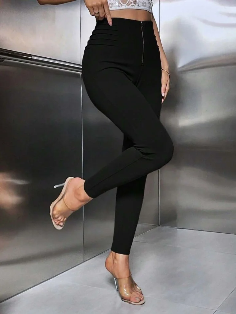 Kadın Yüksek Belli önden Fermuar Ve Nervur Detaylı Dalgıç Tayt