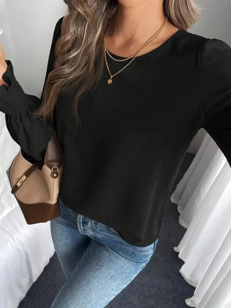 Kadın Uzun Kollu Derin Yuvarlak Yaka Kaşkorse Bluz