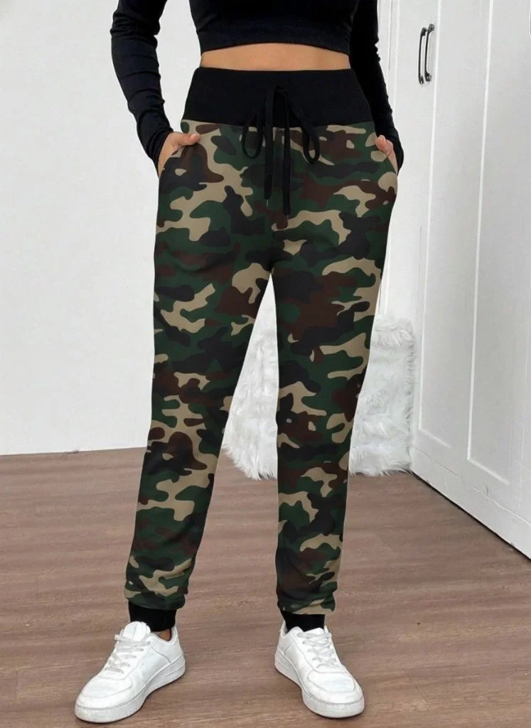 Kadın Yüksek Bel Kamuflaj Desenli Dalgıç Tayt