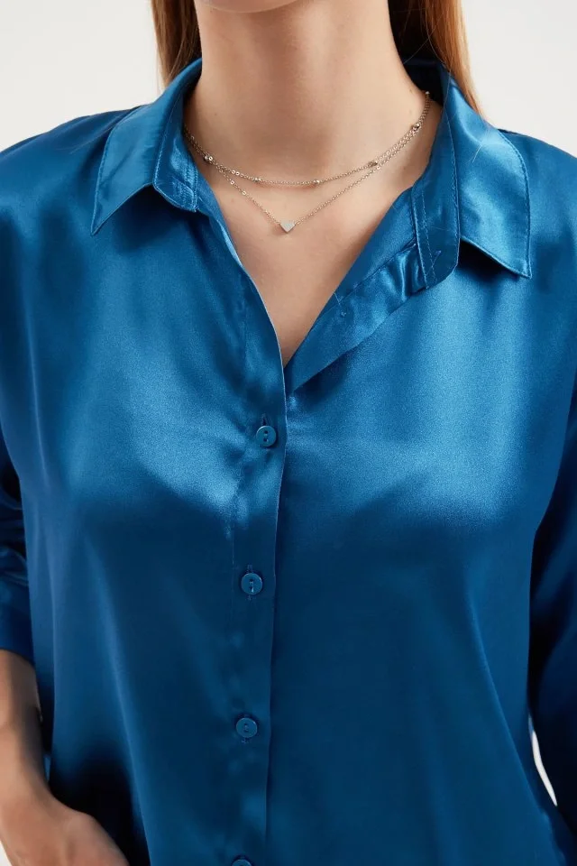 3964 Hafif Dökümlü Saten Gömlek - Petrol