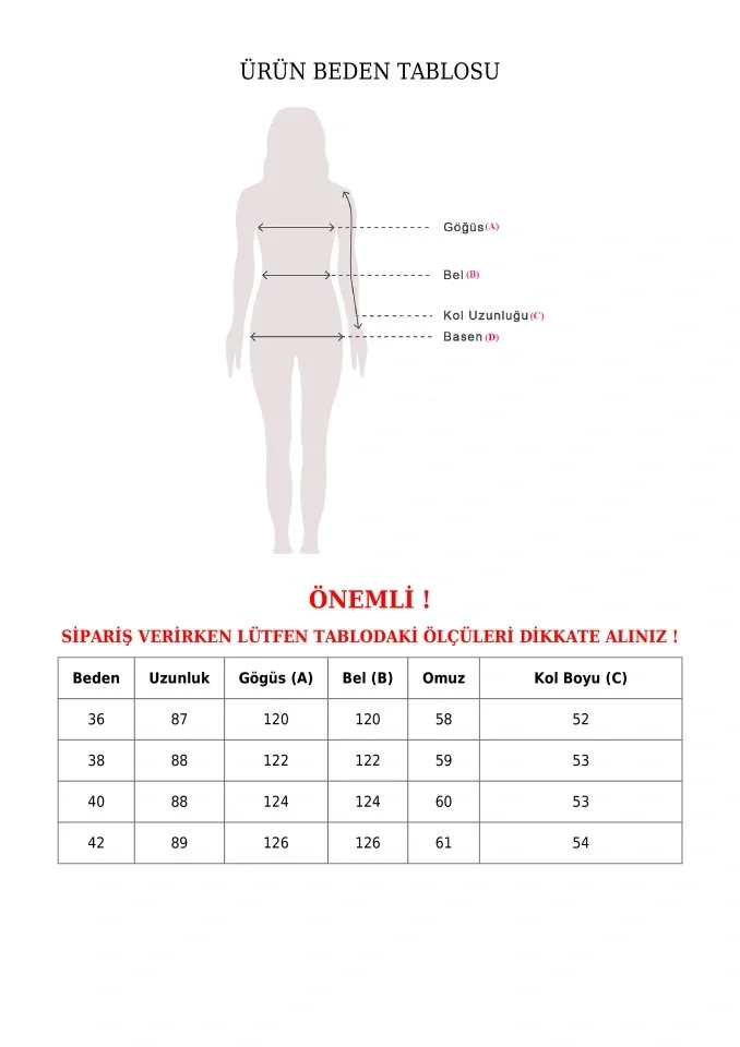 Kadın Uzun Kollu önden Fermuarlı Ithal Krep Elbise