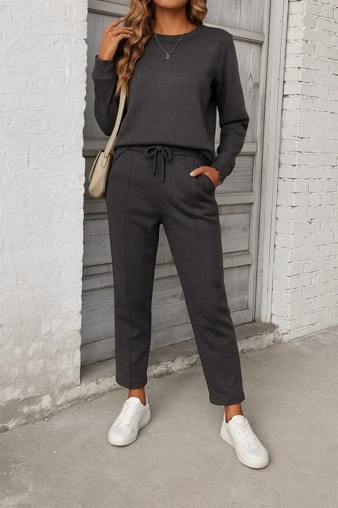 Kadın Uzun Kollu Yanları Nervurlu Viskon Iki Iplik Ve Pantolon Ikili Takım