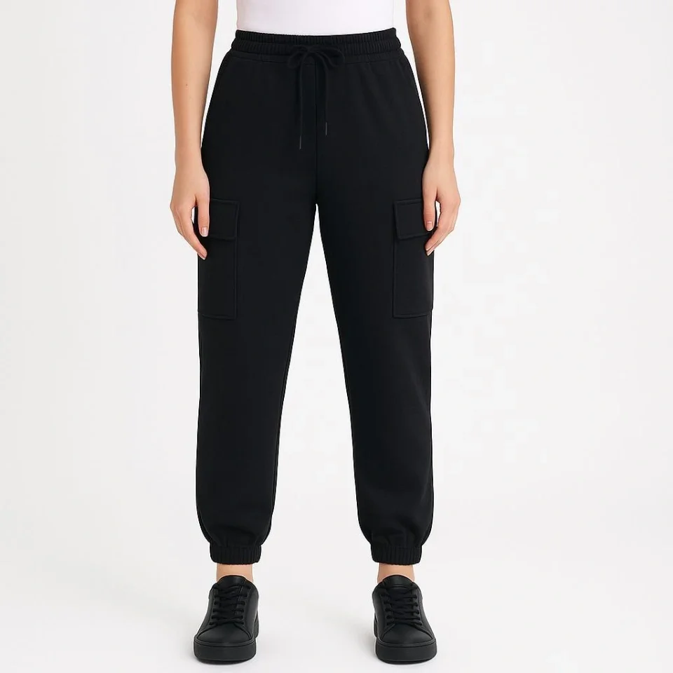 Siyah Jogger Eşofman Altı Rahat Kalıp, Kargo Cepli, Lastikli Paça, Günlük Spor Pantolon - Siyah