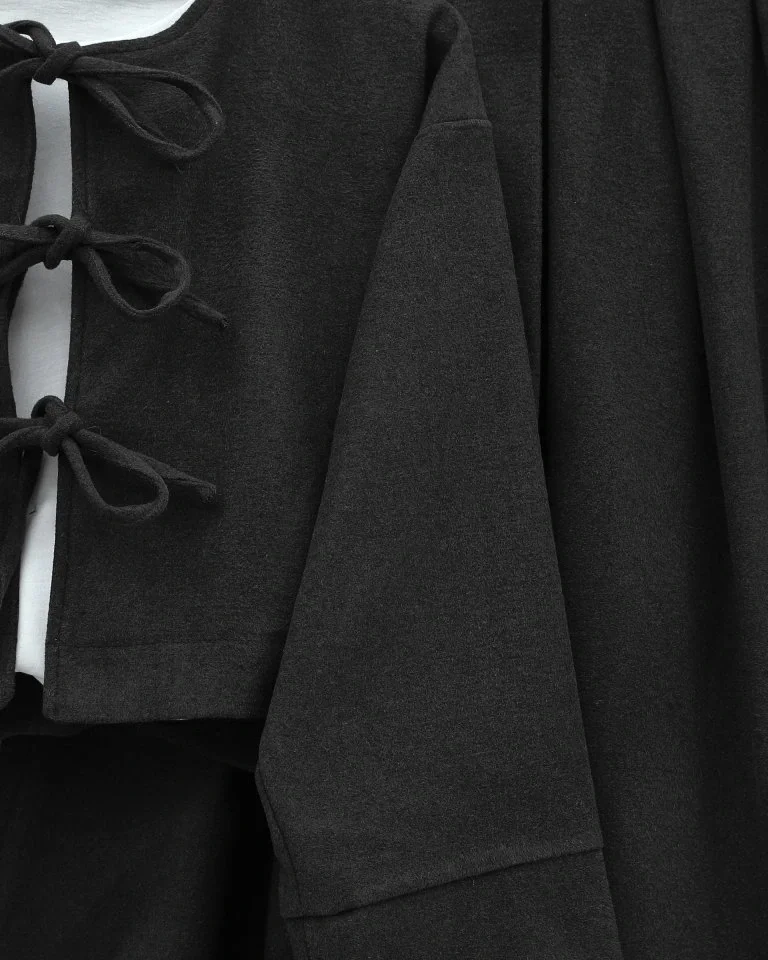 Önü Bağcıklı Etekli Kaşe Takım -Siyah