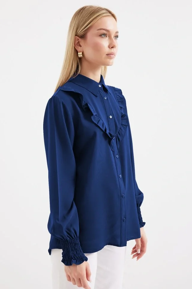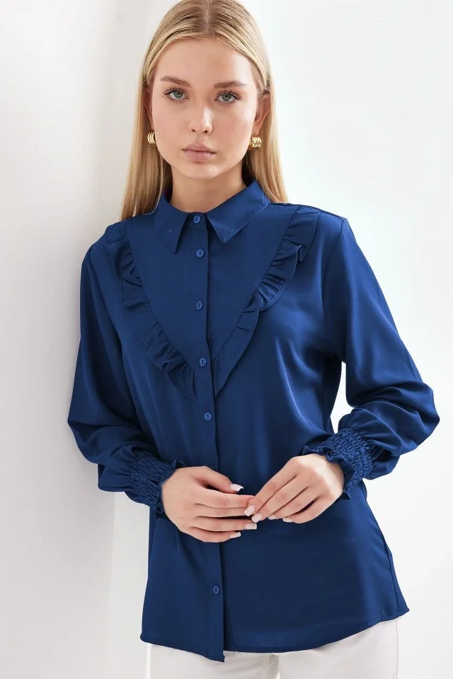 20223 Fırfırlı Uzun Kol Gömlek - D. İndigo