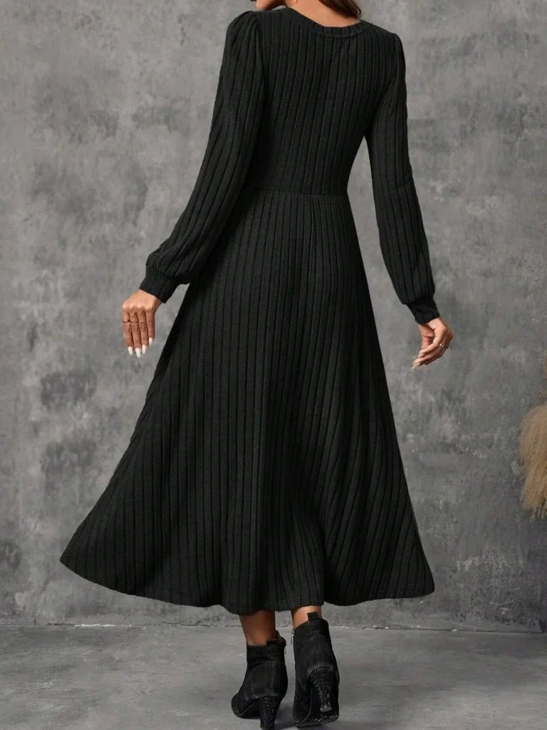 Kadın Uzun Kollu Yuvarlak Yakalı Kiloş Uzun şardonlu Kaşkorse Elbise