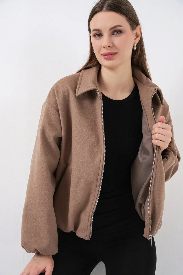 Büzgülü Oversize Kaşe Ceket 0728 - Bisküvi