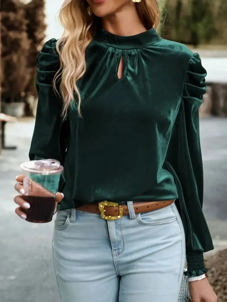 Kadın Uzun Kollu Balıkçı Yaka Damla Detaylı Kadife Bluz