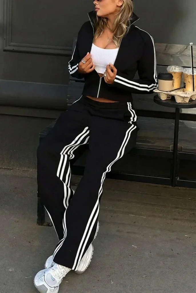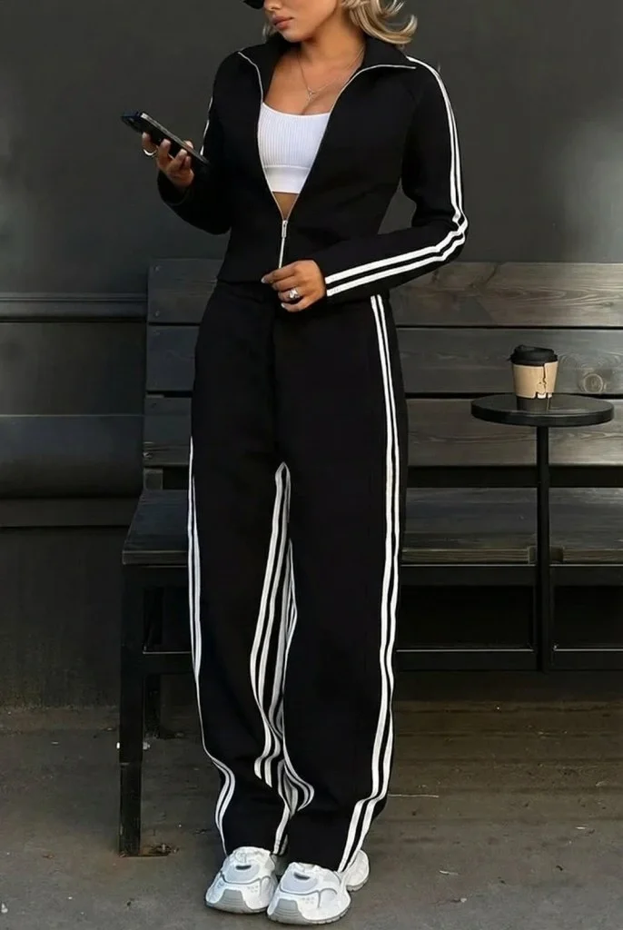 Kadın Uzun Kollu önden Fermuarlı Kısa Viskon Iki Iplik Bluz Ve Pantolon Ikili Takım