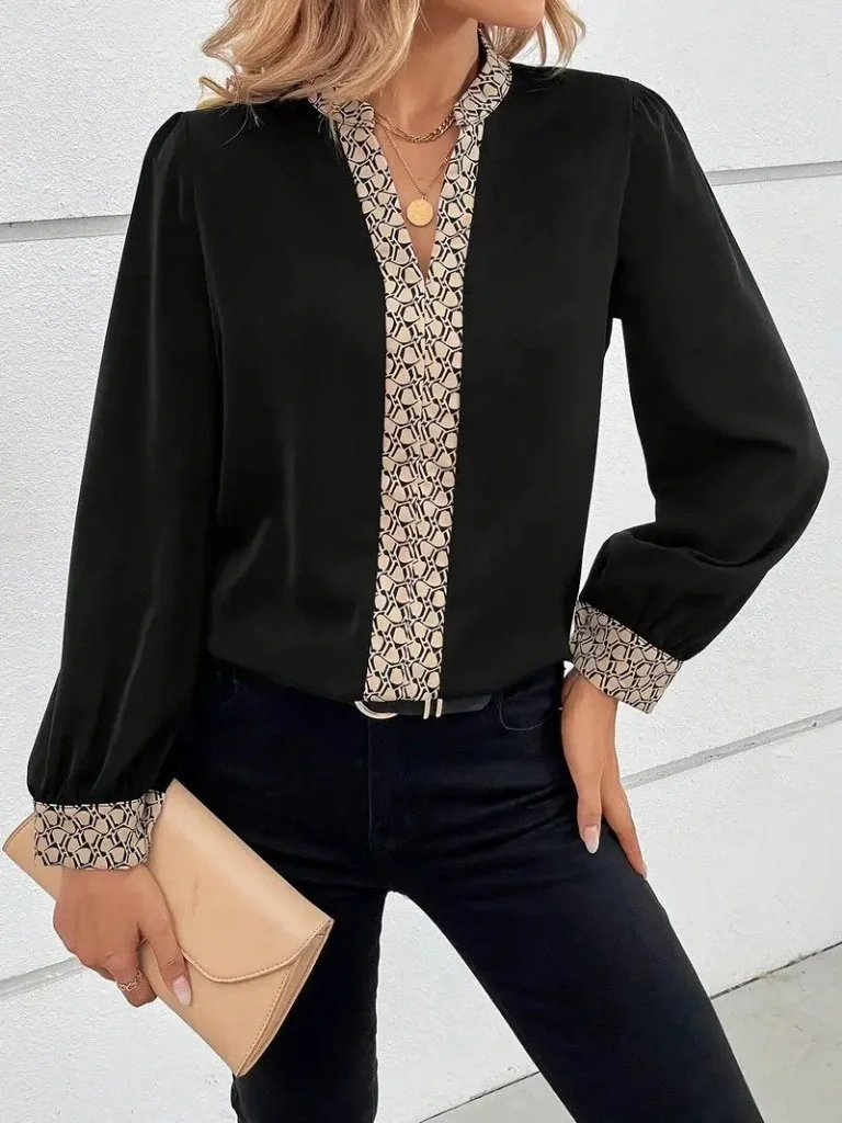 Kadın Uzun Kollu V Hakim Yakalı Desenli Ithal Krep Bluz