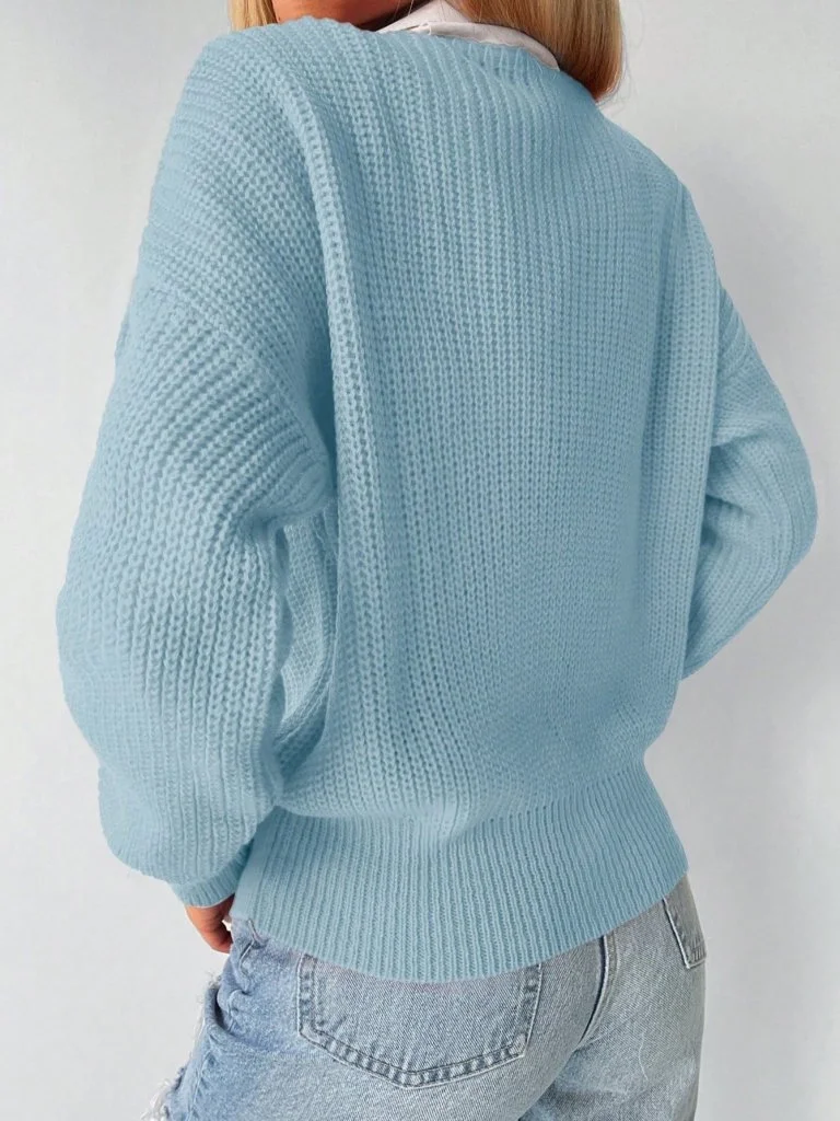 Kadın Uzun Kollu Düğme Detay Triko Bluz