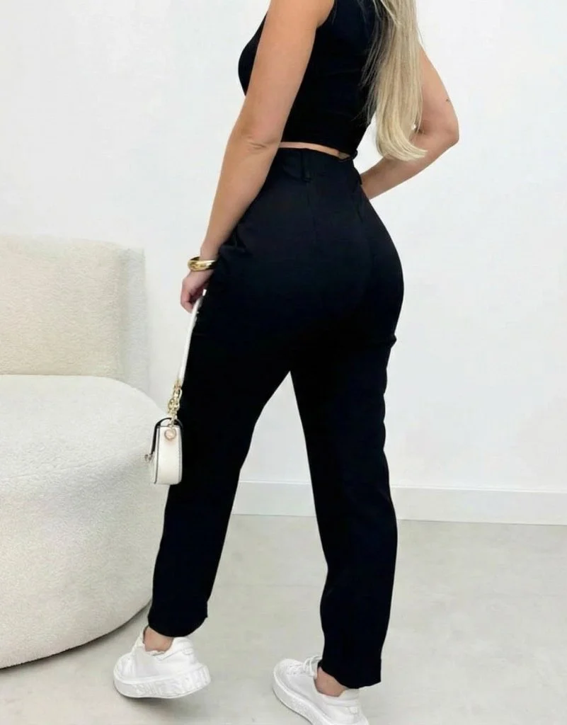 Kadın Yüksek Bel Cepli Paça Ağzı Pile Detaylı Ithal Krep Pantolon