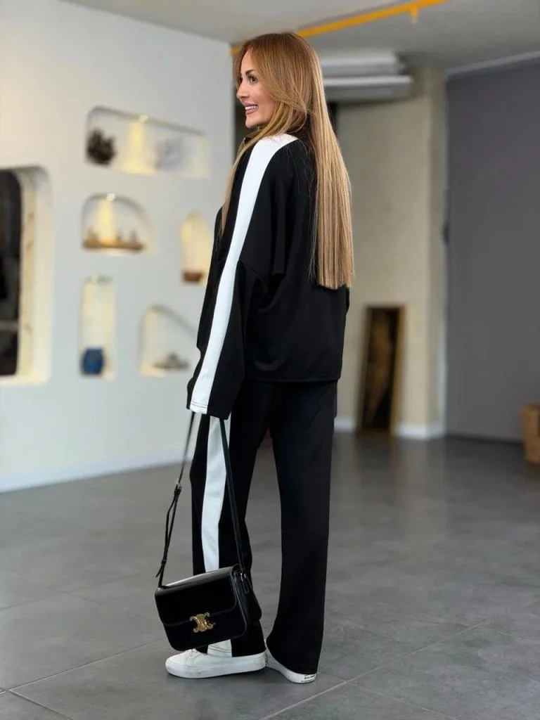 Kadın Uzun Kollu Kolu Tül Yanları şerit Detay Modal Ikili Takım