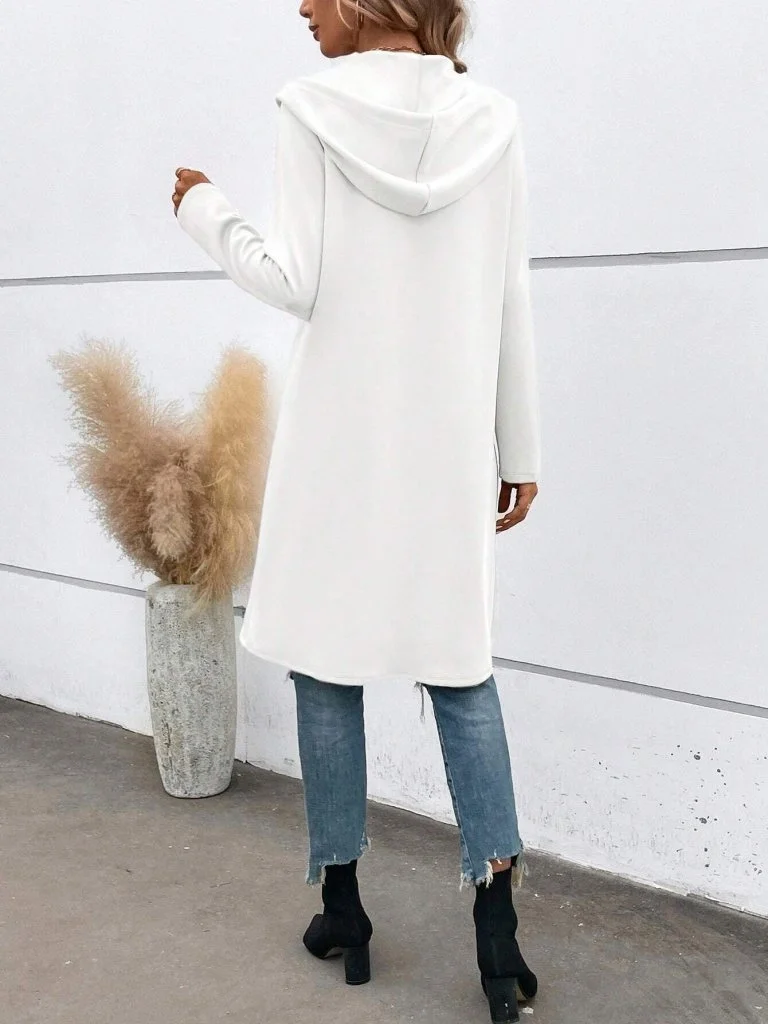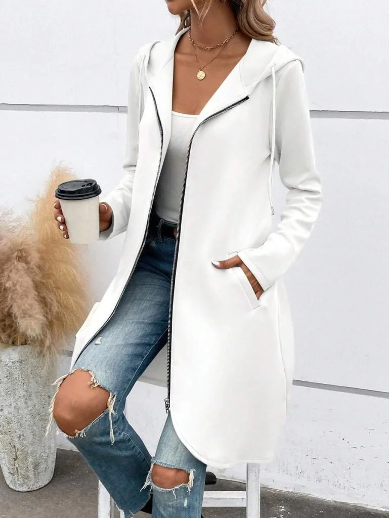 Kadın Uzun Kollu Kapşonlu önden Fermuarlı Midi Dalgıç Ceket